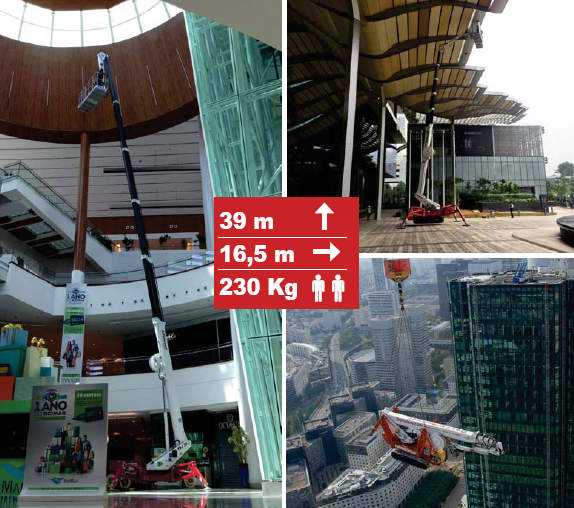 ·  TSJ39蜘蛛車支腿可以單獨旋轉在3個不同的位置,自動自調平5節(jié)伸縮臂同時控制臂鉸接上保證高空中的靈活性和精確度。
